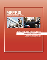 In addition to service benefits, MFPRSI also offers disability benefits for members who are determined to be unable to continue their regular duties. For additional information regarding disability benefits, see the Disability Retirement Brochure at the bottom of this page.