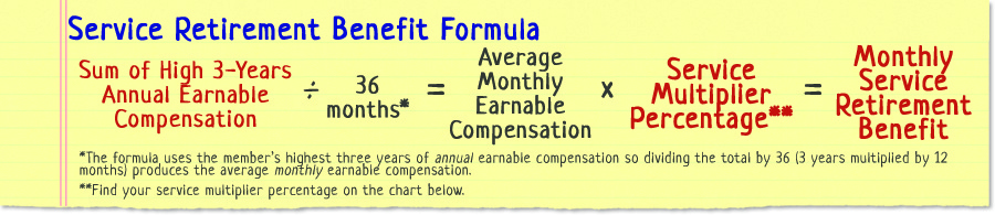 With 22 years of service the basic service retirement is equal to 66% of a member’s average final compensation. For each year of service beyond 22, a member can add an additional 2% credit. Please refer to the Basic Benefit Multipliers chart below. - How is the average final compensation determined?